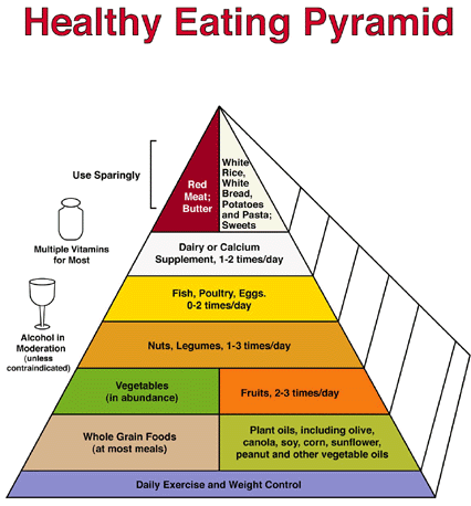 Dr. Atkins is gisteren, 17 april 2003 overleden op de leeftijd van 72 jaar. Atkins lanceerde in 1963 een dieet dat later het Atkins-dieet genoemd werd, bestaande uit een dieet met slechts zeer weinig koolhydraten en daardoor een veel hoger vet en eiwit deel. Nu roepen veel "voedingsdeskundigen" in Nederland (maar ook in andere landen) al jaren dat we minder vet moeten eten, maar de echte deskundigen geven Atkins meer gelijk in zijn mening dat er ook goede vetten zijn en dat met name de geraffineerde graanproducten een gruwel voor de gezondheid zijn. Om af te vallen is het Atkinsdieet misschien een snelle optie, ik heb dat vaak genoeg in de praktijk gezien, maar wil je op een gezonde wijze een gezond gewicht bereiken dan is minder inname van caloriën en meer beweging een must. De beste adviezen die je mijns inziens nu kunt volgen zijn die van prof. Walter Willet (deze man heeft al meer dan 700 studies gepubliceerd over voeding) en is o.a. auteur van het boek: "Eat, drink and be healthy" en van dr. Roy Walford (zie www.walford.com). Dr. Walford pleit voor een langzame calorische restrictie (in anderhalf jaar tijd, steeds een beetje minder gaan eten) en beiden zijn groot voorstander van inname van meer plantaardige oliën, minder caloriën, minder vlees, minder geraffineerde producten. Volgens Walter Willet is dit een gezonde voedsel pyramide (eet veel van de basis, weinig van de top):
